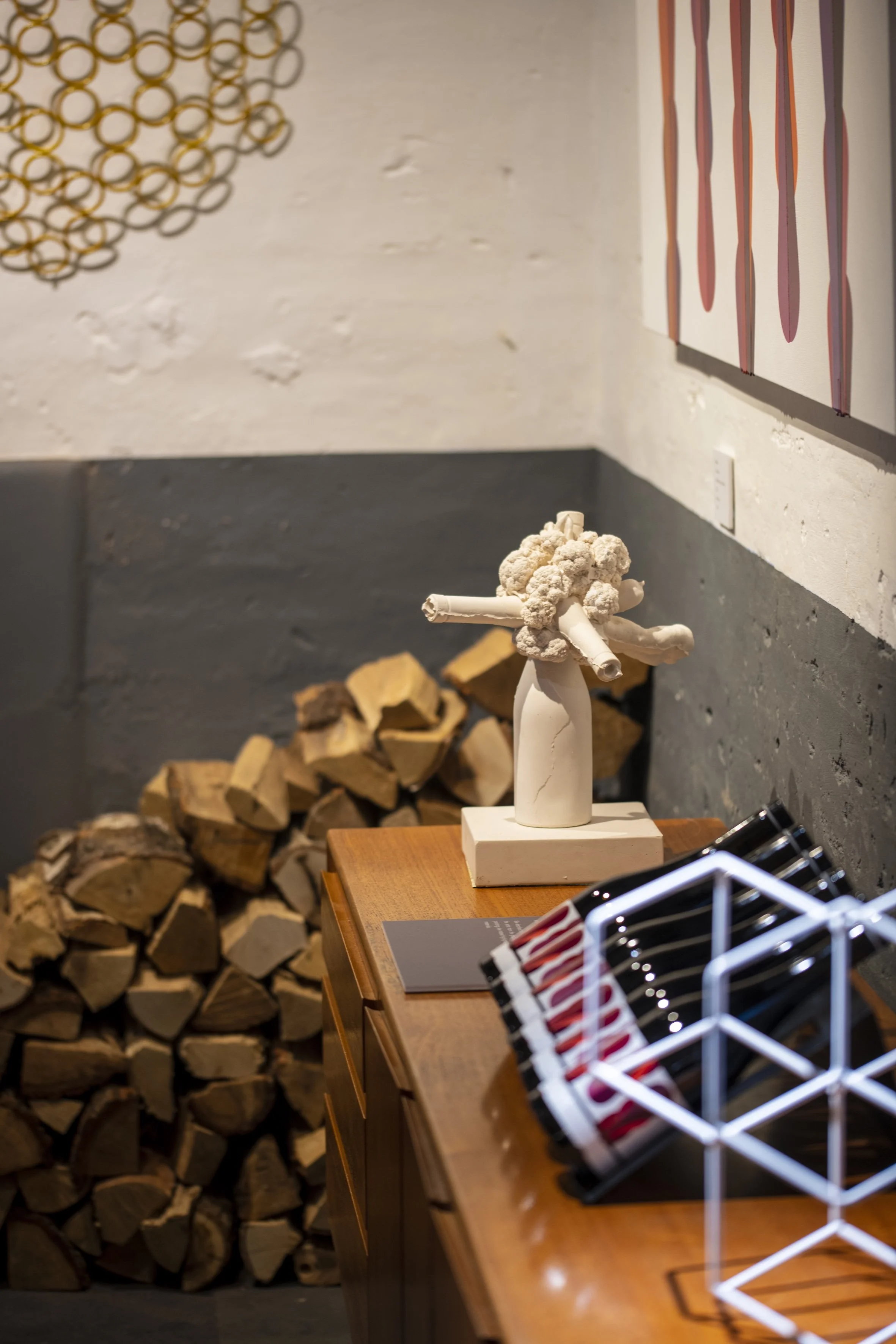This exhibition celebrated the launch of Artefact #6, which featured labels designed by Walter, inspired by both the wine and Wood, Earth Hoop.